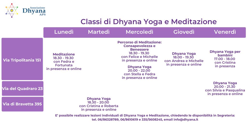 Per ulteriori disponibilità di orario, visita il sito www.dhyanalombardia.it